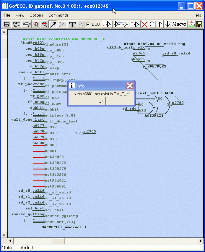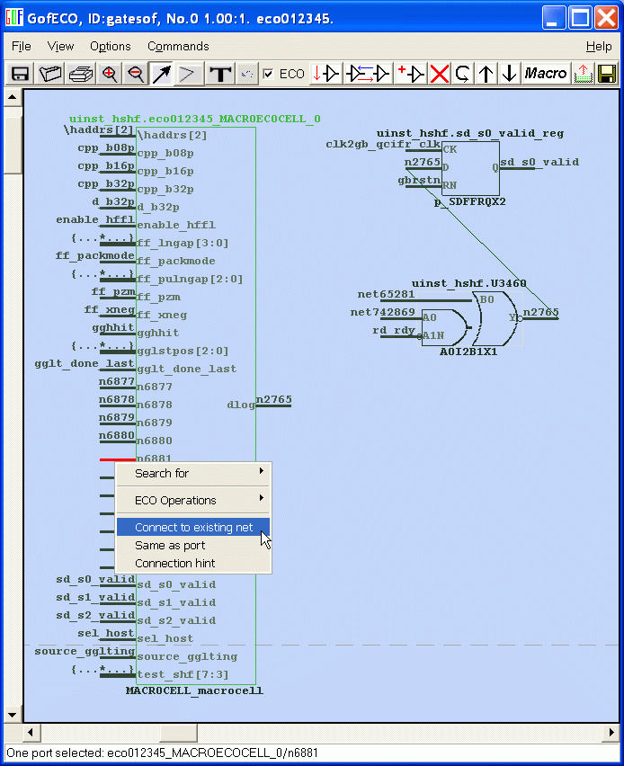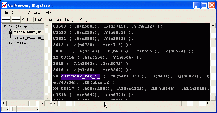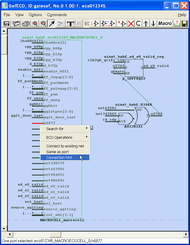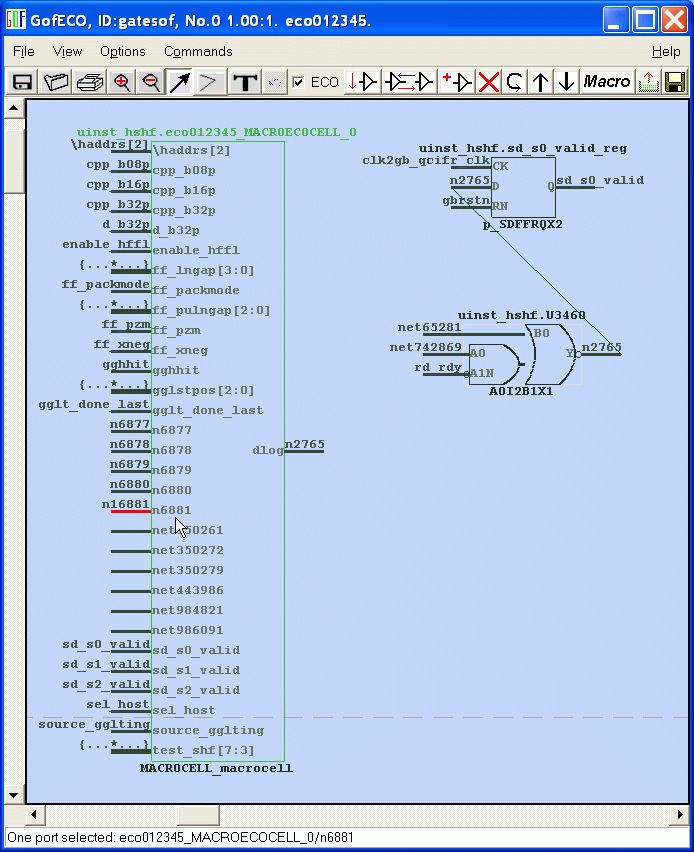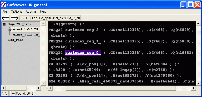 - Use 'Connection hint' and double click to highlight the instance in GofViewer. You can see '.Q(n16881)'.