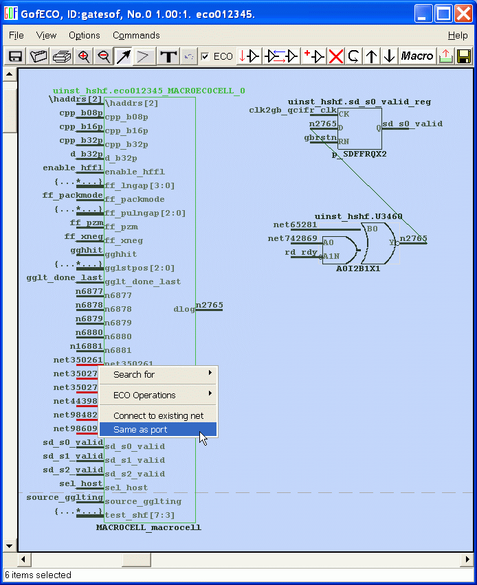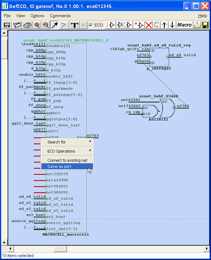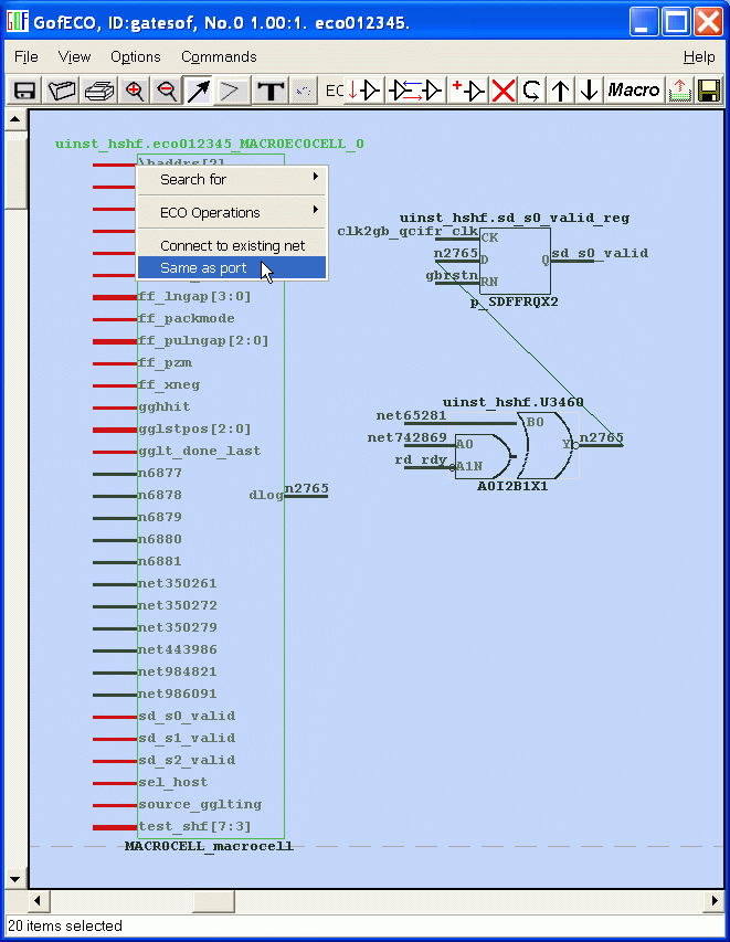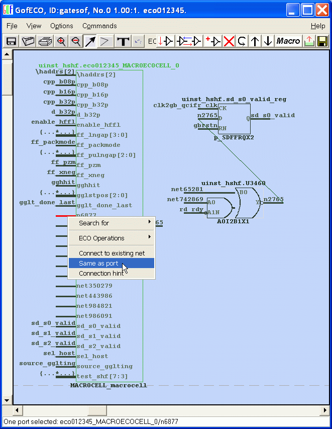 - Select of all the ports that you know they should connect to same net as the port. Mouse-right-click to pop up window and select 'Same as port'.