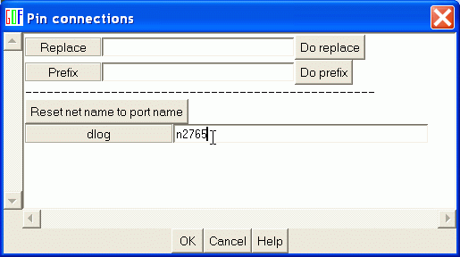 - On the right side of 'dlog', fill in n2765. Ignore 'Replace' and 'Prefix' for now. They are for handy for bus connections. You have no need to type in bus connection one by one. You can click Help for detail.